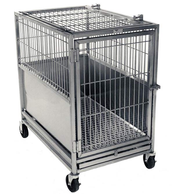 The Tilt Floor Kennel can be ordered in aluminum or stainless steel construction.