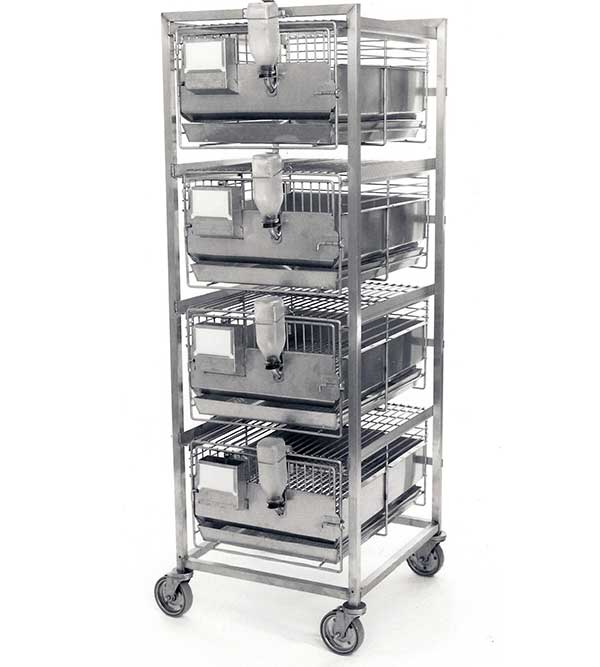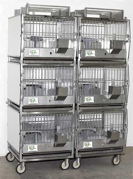 Rabbit breeding racks, stainless steel rabbit cages, and guinea pig cages and racks manufactured by LGL include features that meets animal guidelines.